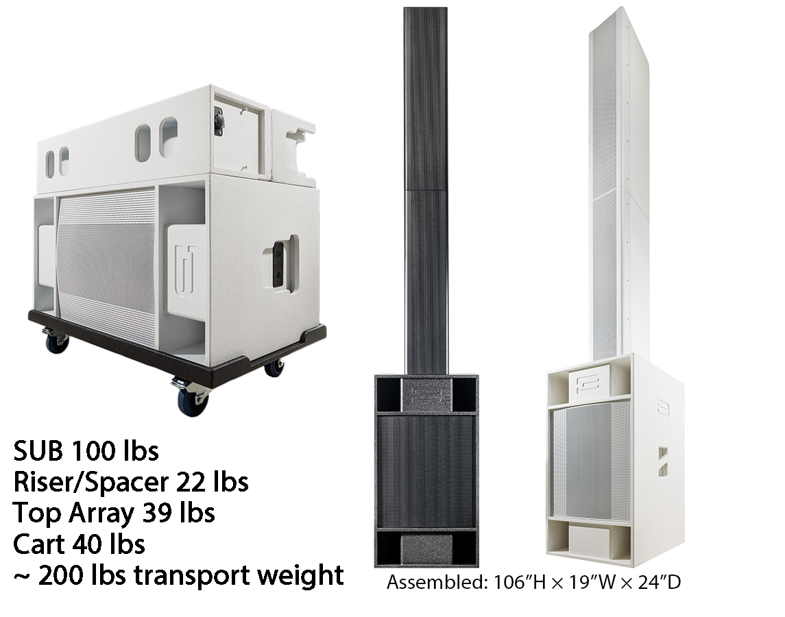 | System Type | 3-Way Active Column System: 18” sub + dual 8” mids + 1.4” HF compression driver |